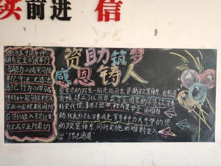 活动当天,各班同学纷纷展示了自己的才华和创意,通过各种形式的黑板报,生动形象地展示了国家资助政策的实施情况和取得的成果。有的同学用漫画的形式描绘了贫困学生在接受资助后的生活改变,有的同学则通过文字叙述了自己受益于国家资助的经历,让同学们深受感动。