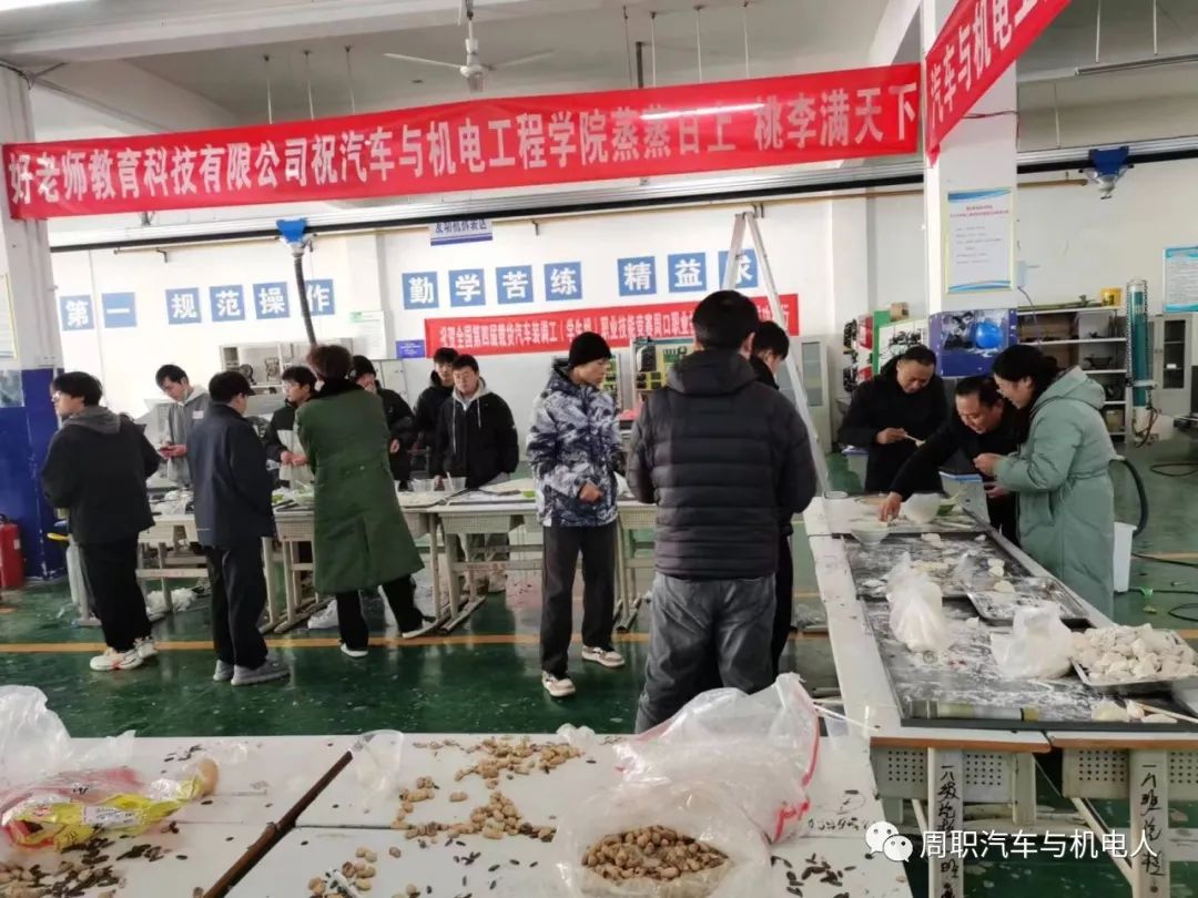 12月21日下午,3044永利师生在汽车实训中心组织情暖冬至师生联谊活动。学院领导崔东风书记带领学生管理工作老师们,深入到同学们中间,和同学们一起包饺子、煮饺子。全体师生们在欢声笑语中,在赞美温馨中,在相互嬉闹中,度过了一个温暖、爱心和难忘的一个夜晚。