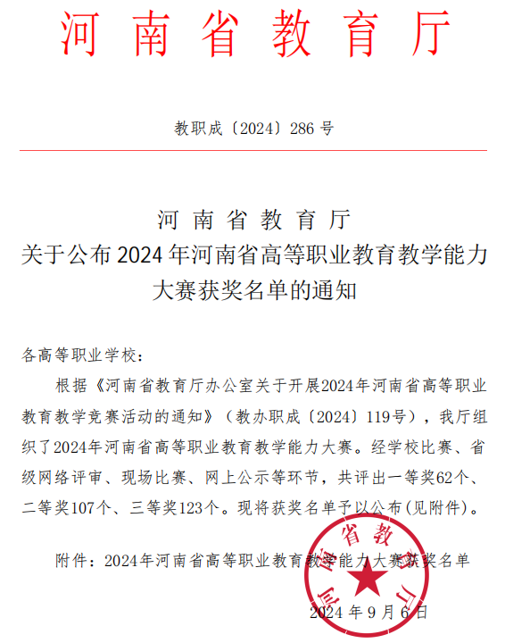 喜报!我院在2024年河南省高等职业教育教学能力大赛中获得佳绩