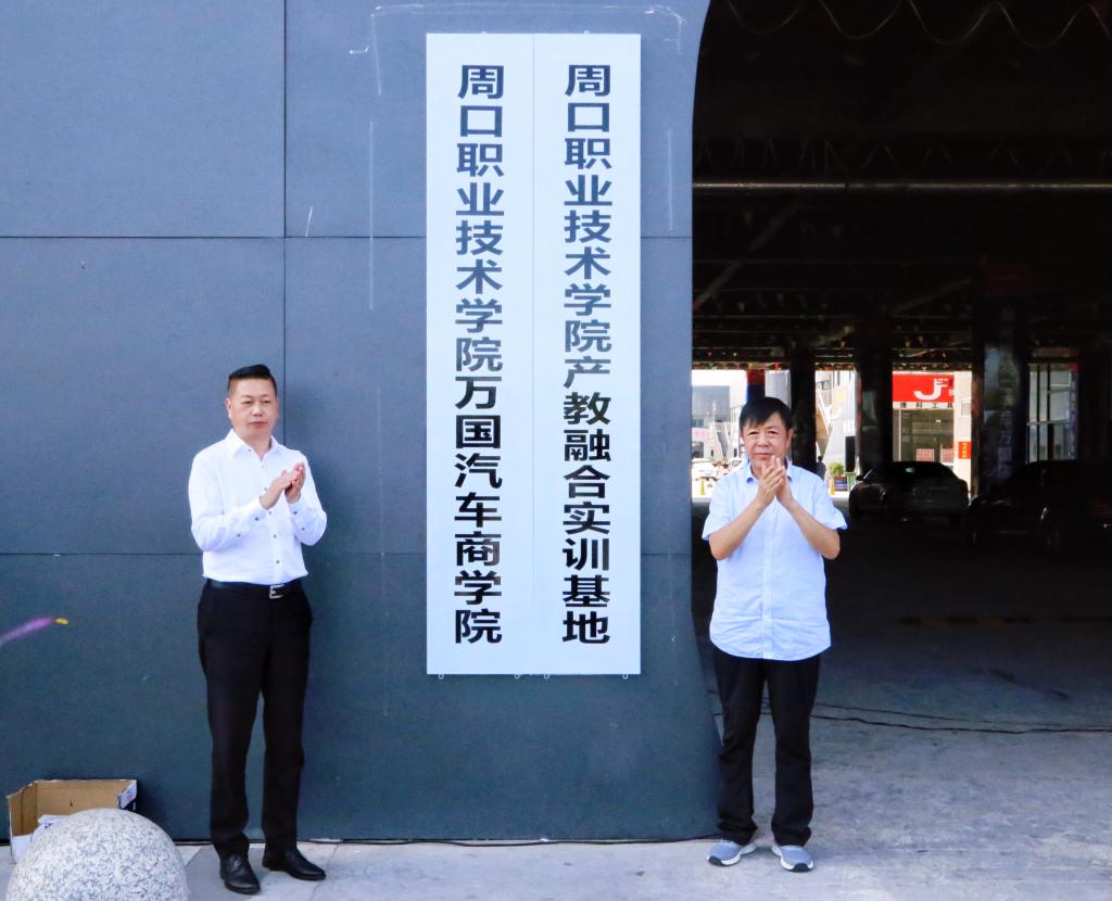 刘士欣与吕辉共同为周口职业技术学院万国汽车商学院产教融合实训基地揭牌。