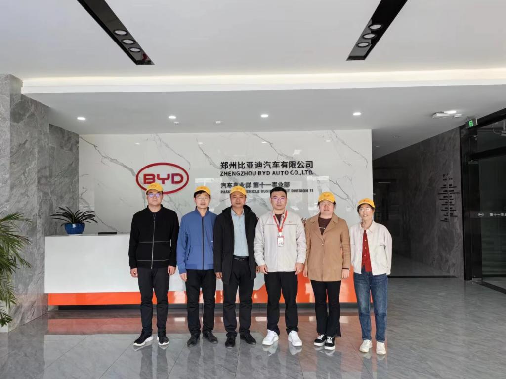 为加强校企合作,优化人才培养方案,进一步推动我院新能源汽车技术专业建设工作,3月23日上午,副院长田伟华,教学办主任丁兰花,汽车教研室主任赵尚丽及汽车实训室中心主任张孟华、骨干教师曾少华一行到郑州比亚迪进行调研。