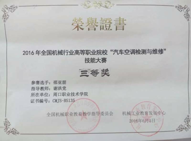 2016年全国高职院校技能大赛荣获“三等奖”