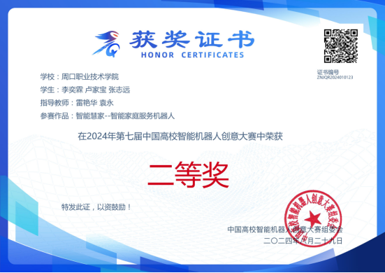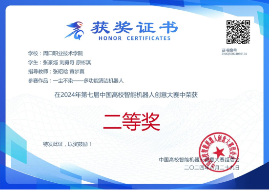 近日,我院学生李奕霖、卢家宝、张志远、张豪炀、刘勇奇、原彬淇六位同学在雷艳华、袁永、黄梦真、张昭晗四位教师的指导下,不顾炎热,克服困难,在第七届中国高校智能机器人创意大赛荣获两个二等奖。