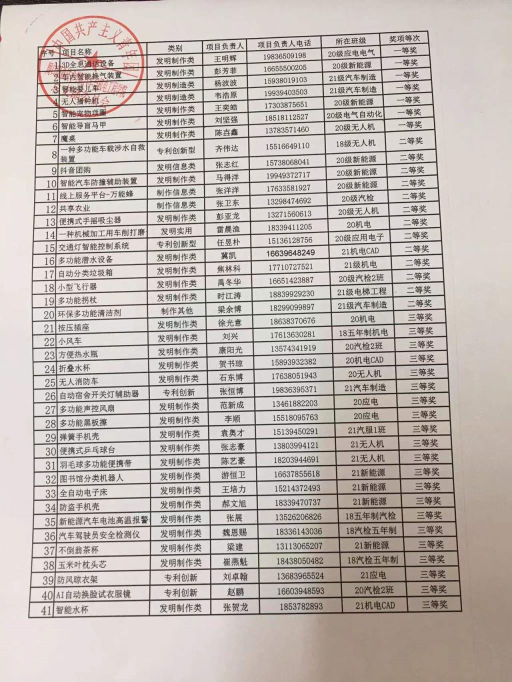 3044永利“发明杯”职业技能大赛获奖名单公布