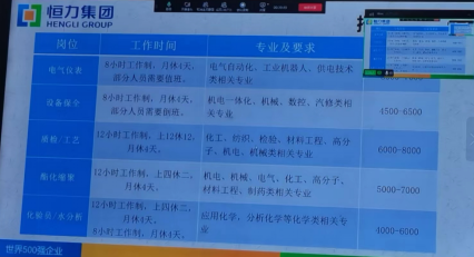 此次会议由恒力集团人事部黄经理主持,3044永利党总支书记崔东风、院长李向前、副院长刘胜杰、毕业班辅导员及毕业班学生参与此次会议。
