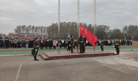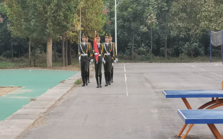 学校国旗护卫队成员迈着铿锵的步伐来到了国旗台下,全场一片肃静。在激昂的《义勇军进行曲》中,升旗手振臂挥,鲜艳的五星红旗徐徐展开,全年级师生的注目中,在凛冽的寒风中迎风飘扬在周口职业技术学院的上空。