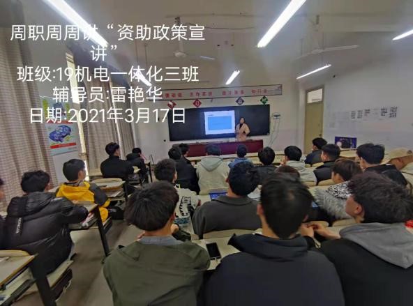 为让广大学生了解和掌握国家资助政策,2021年3月8日-3月12日,按照学校学生处要求我院组织学生召开“奋进新时代,周职周周讲”第四十六期——“资助政策宣讲”主题班会。