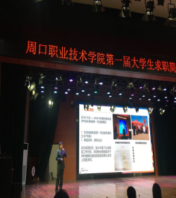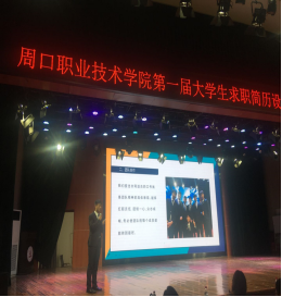 6月18日晚上19:00,周口职业技术学院第一届大学生求职简历设计和竞聘演讲比赛在开元校区励德报告厅举行,参会领导有各二级学院书记、学生工作副院长、学管办主任和就业指导员等。