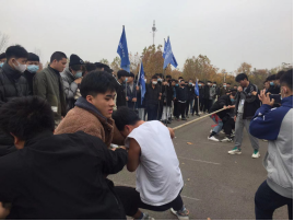 比赛进行中,只见上场人员一个个铆足了劲握紧绳子,往后使劲的拔,两边观看比赛的人员也都不受控制的呐喊着“加油!加油!加油!”赛场上洋溢着青春的样子,心情都无比激动。尽管天气有些寒冷,但同学们都个个心潮澎湃,把寒冷抛到了脑后。