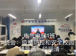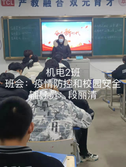 本次主题班会主要内容:1.注重生命教育,疫情防控期间,要勤洗手、戴口罩、一米线;2.防电信诈骗,不要相信天上会掉馅饼;3.校园实行封闭管理,非必要不外出,外出必请假。主题班会召开之后,大家纷纷表示要遵守学校规章制度,加强个人防控,非必要不外出。