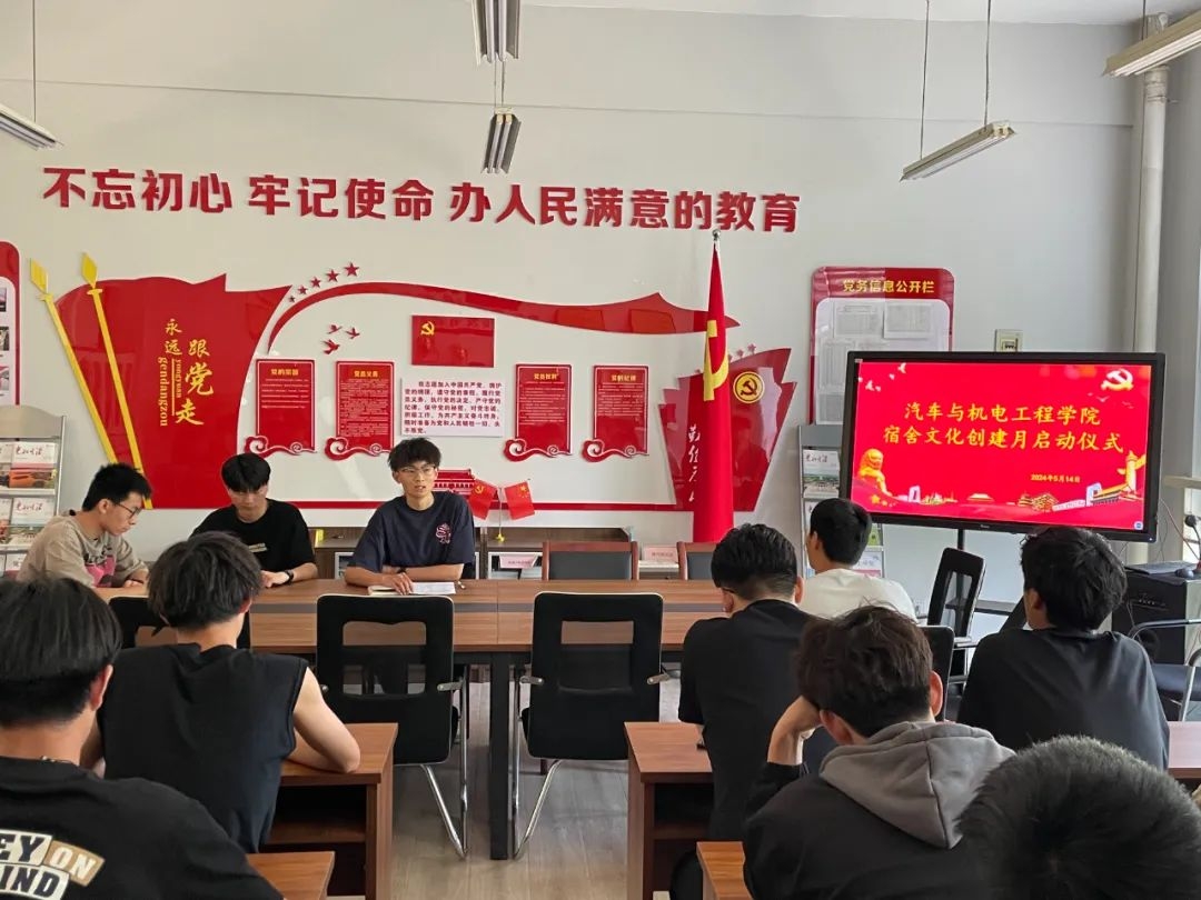 为通过丰富多彩的形式,提升学生的综合素质,营造积极向上、和谐有序的宿舍环境。3044永利2024年5月14日上午十点在六区二楼党员活动室举办“宿舍文化创建月”启动仪式。本次仪式由学生会副主席曹黎军主持,各班班长参加此次活动。