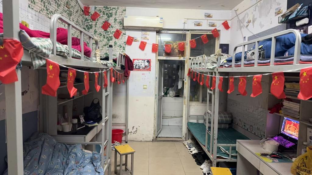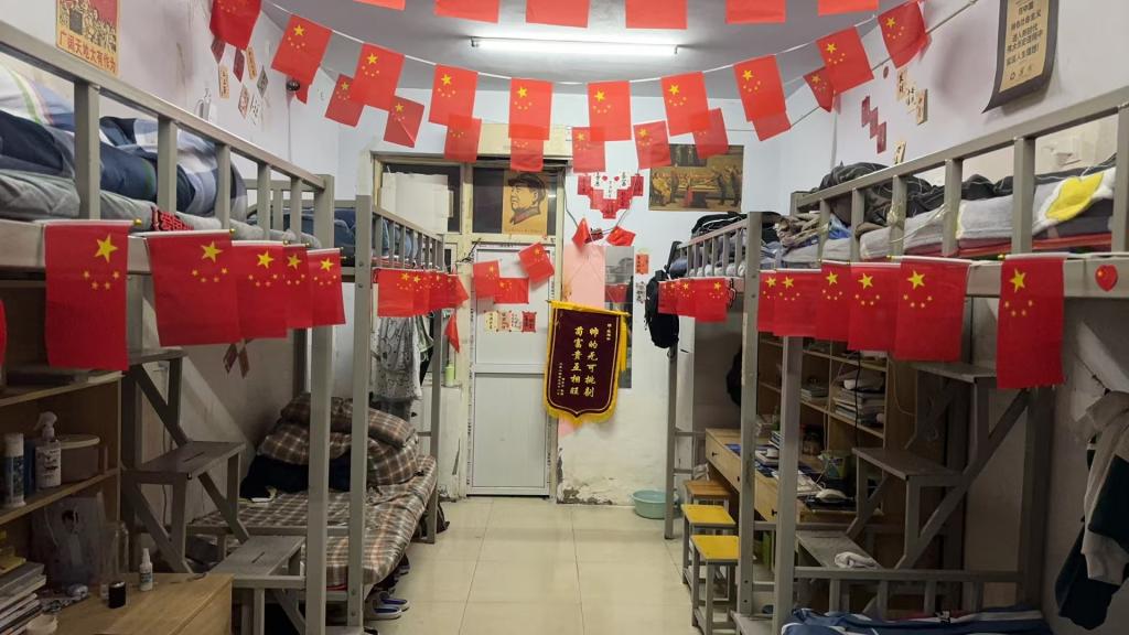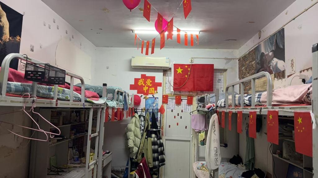 比赛消息一经发布,各个宿舍便开始积极筹备。同学们热情洋溢,充分展现出他们的智慧和动手能力。他们有的在宿舍门上贴上精心设计的宿舍标识,有的用红旗和气球装饰天花板和窗户,营造出欢快的氛围。在床铺周围,同学们也花费了不少心思,有的挂上了自制的小挂件,有的摆放了可爱的毛绒玩具。
