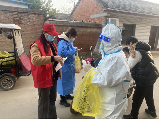 教师党员黄梦真在社区进行核酸采集志愿者服务