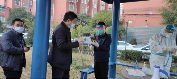 2022年11月17日,我院教师党员毕朝旭、黄梦真在所在社区进行志愿服务,在核酸检测现场进行秩序引导、帮助录入信息、提醒群众戴好口罩及保持一米线距离等工作。党员志愿者们用实际行动和责任担当,协助核酸检测工作高效有序进行,充分发挥了共产党员的先锋模范作用。