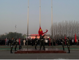 早上6点整,参与人员准备就位。6点30分,学管办主任王亮宣布,升旗仪式,正式开始。现场随着国旗护卫队的出现而安静下来。在全体师生的注视下,精神抖擞、英姿飒爽的的国旗护卫队迈着铿锵的步伐护送着五星红旗来到了国旗下,伴随着《义勇军进行曲》,升旗手振臂一挥,鲜艳的五星红旗冉冉升起,在全体师生的注目下,五星红旗迎风飘扬在我校的上空。升旗仪式结束后,学生代表发言,他的演讲体现了当代大学生的社会责任感,并庄严承诺在日后的工作学习中信心百倍,求真务实,志存高远,谨记恩师教导,作为学生,我们应当以饱满的热情投入到紧张又充实的学习生活中。